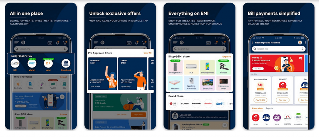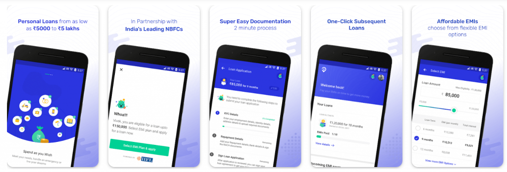 - This loan software offers shopping EMIs for online purchases in areas such as fashion, electronics, travel, furniture, and more.
