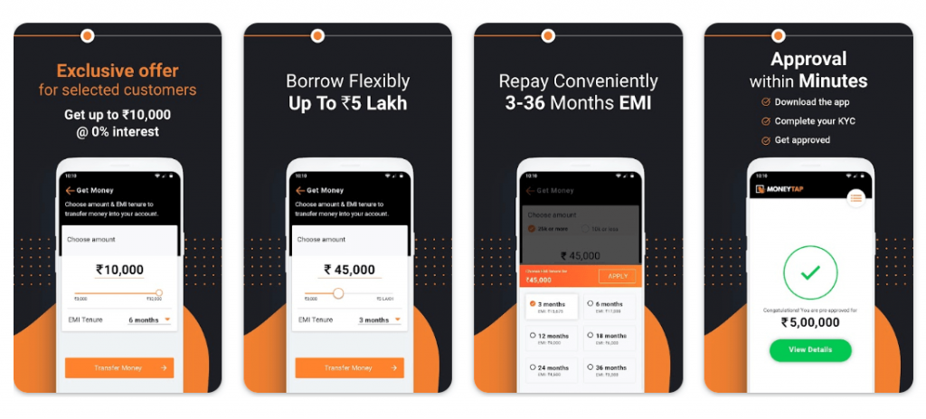 - The approval process is also one-time, so the next time you apply for a MoneyTap loan, the process will be even faster than the first.