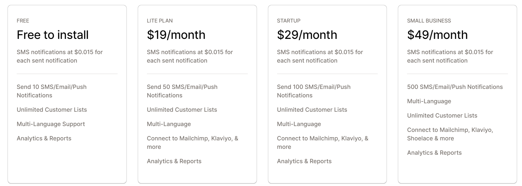 Back in Stock Shopify App doesn’t only send email alerts as notification but also provides different notifications such as Push notification and SMS messages to it’s customers.
