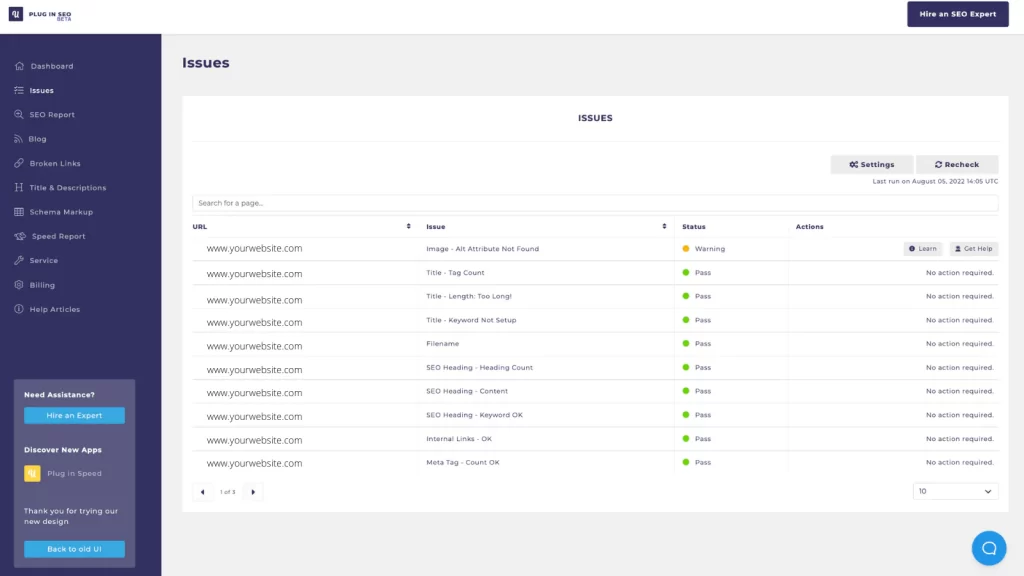 One of the standout features of Plug In SEO is its on-page SEO analysis tool. It analyzes a business’s website and provides recommendations for improving its search engine rankings. This can include suggestions for optimizing titles, descriptions, and other on-page elements, as well as identifying broken links and other technical issues.