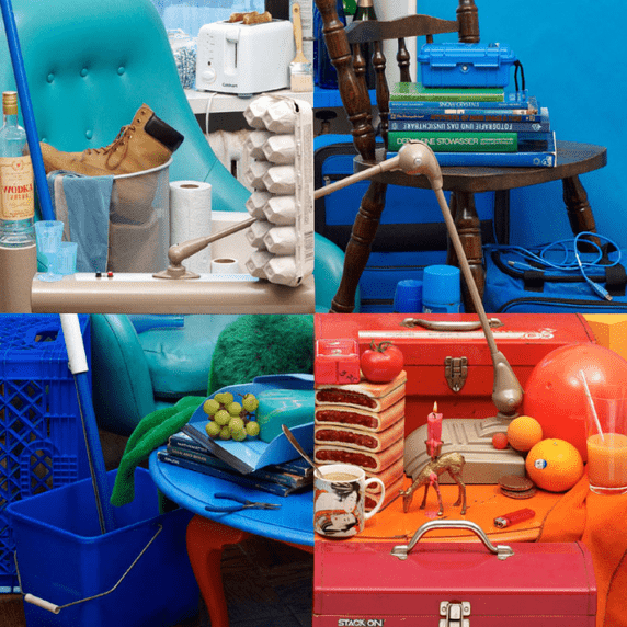 At first this image will blow your mind because it looks like 4 different image, but what if I tell you this is one single image where a bunch of objects are cleverly aligned.